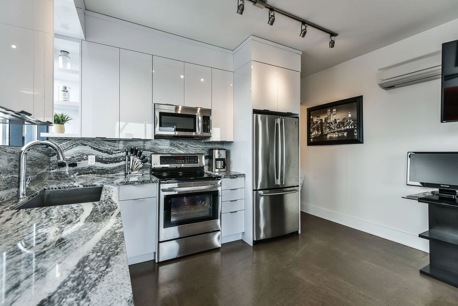 Bright Open Concept Corner Suite With Floor to Ceiling Windows