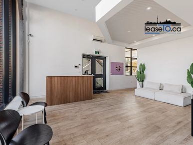 This spacious lower level office consists of two private offices, one large common area, and a full bathroom. The space comes equipped with heated polished concrete floors, AC, a full kitchen and in-suite laundry. $1,800/month + TMI.